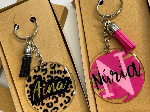 Llavero personalizable acrílico, de 5cm de diámetro. Elige los colores que más te gusten. Personalízalo con el nombre o imagen que tu quieras.